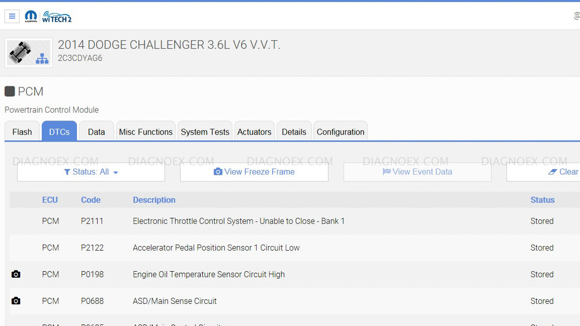 | 2008 | PT | PT Cruiser | wiTECH 2.0 |