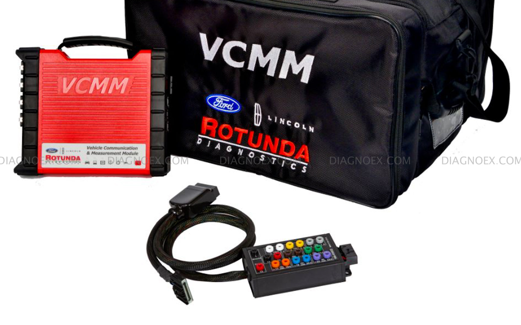 The Vehicle Communication & Measurement Module (VCMM) works with Ford's IDS FDRS software to diagnose, program Ford, Lincoln, and Mercury vehicles. It combines all the functionalities of the VMM, VCM II, and MTS 4000/4100 vibration analyzer in an industry leading, one-box solution. The combining of this functionality will provide dealers with industry leading diagnostic capability at a significantly lower cost of ownership. The Advanced kit includes all components and functionality found in the base kit P/N 164-R9822 along with the advance driveline balance kit and secondary ignition testing capability.