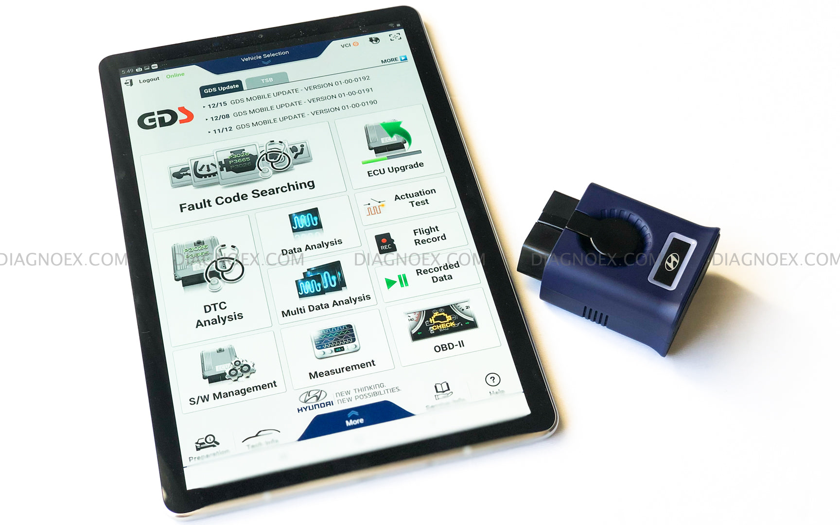 The Hyundai GDS SMART automotive diagnostic scan tool is the advanced successor to GDS Mobile. The GDS SMART is the dealer OEM diagnostic and programming tool used by Hyundai auto dealership technicians as their factory diagnostic system. The system is equipped with a VCI II interface and operates on a robust tablet, facilitating extensive diagnostic capabilities for the entire Hyundai vehicle lineup in North America, encompassing 2024 cutting-edge electric cars.