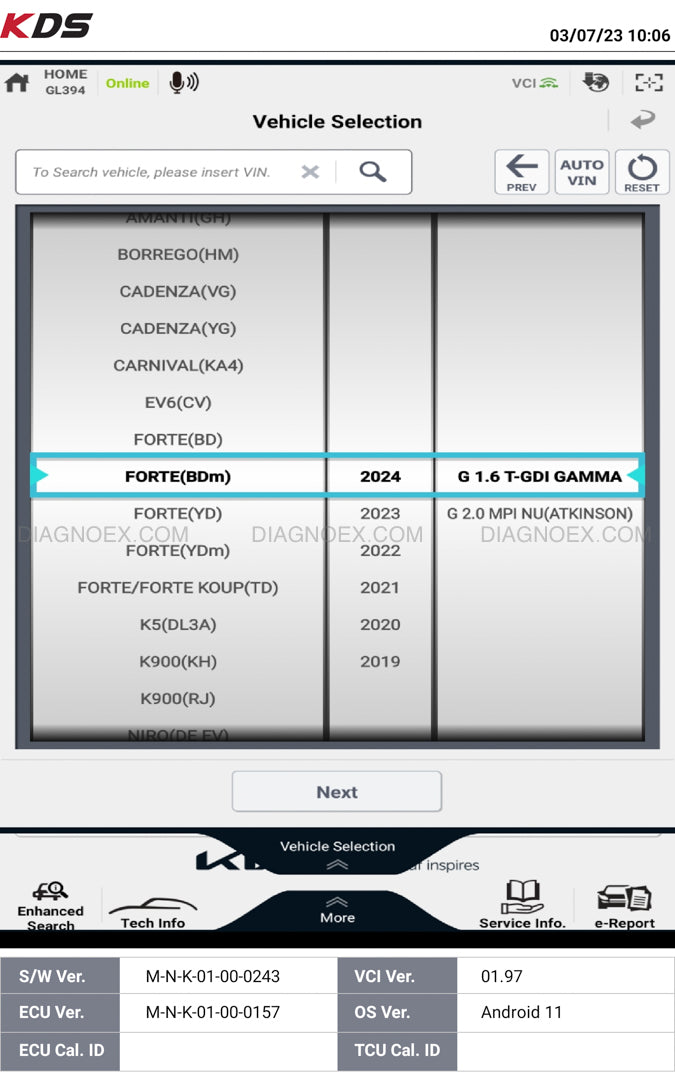 *Contact Diagnoex (diagnoex.com) for the full list of supported vehicles